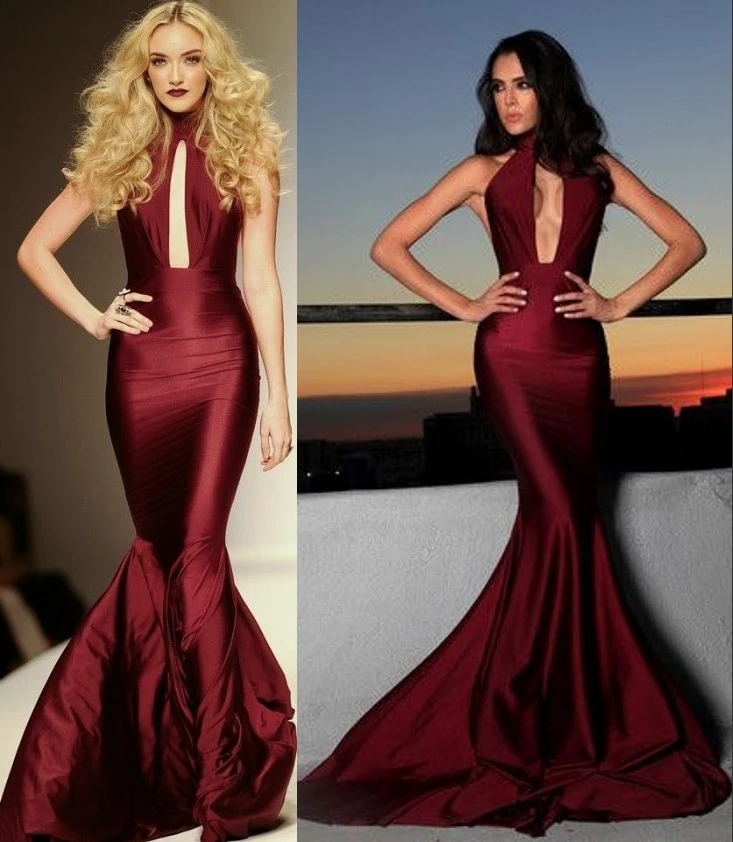 Michael Costello High Neck Backless Mermaid Prom Dresses Elegant Burgundy Long Women Evening Gowns Dress Ball Gown Gown Silkgown Evening Dress Aliexpress